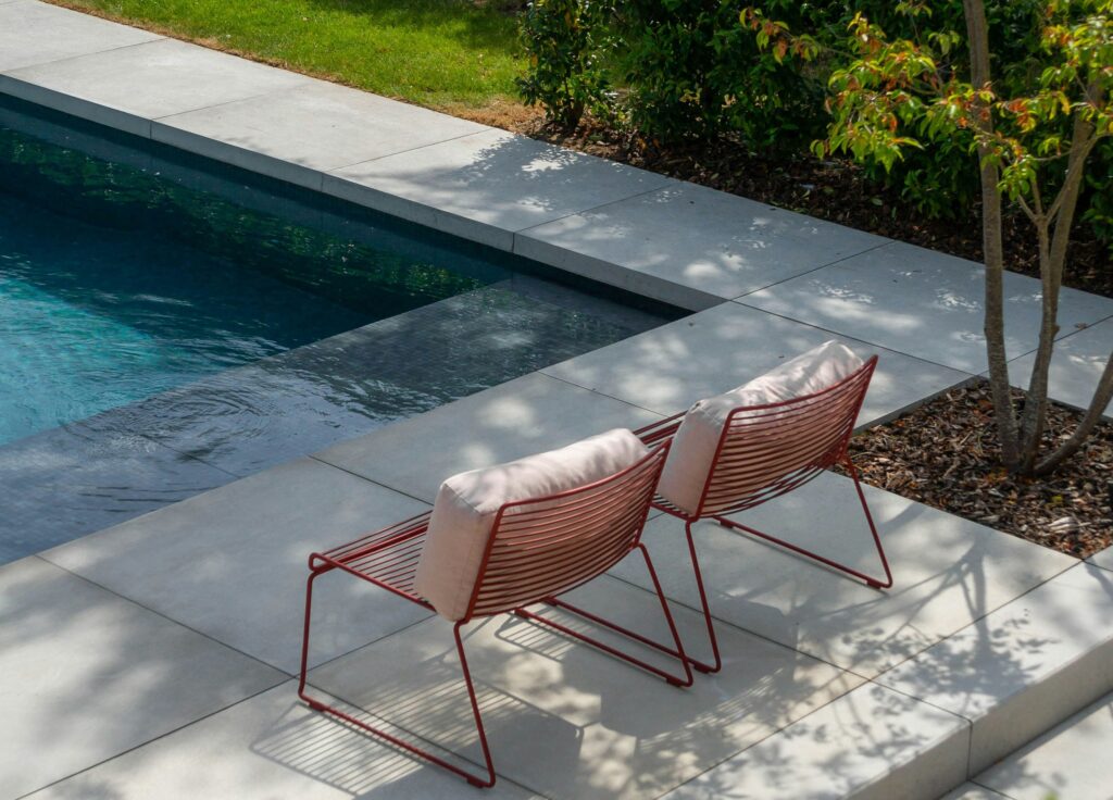 A uniform, clean look often used in commercial and community pools for durability and budget management.